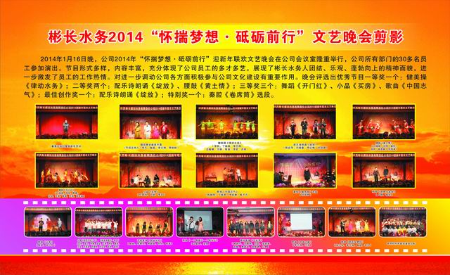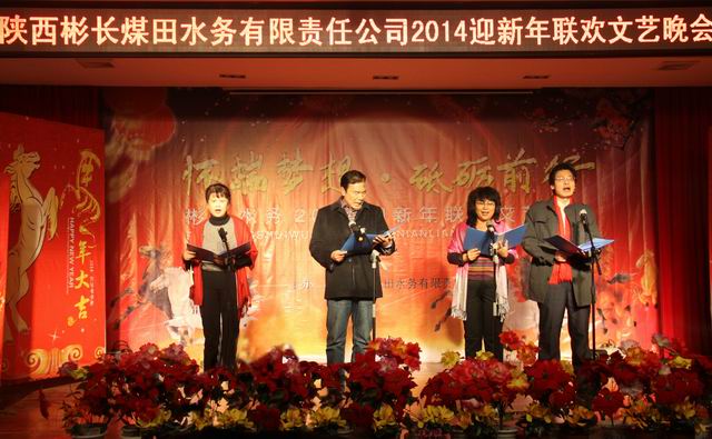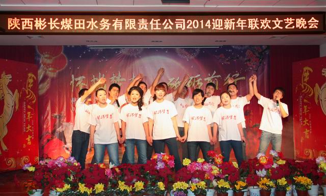 元月16日晚,公司2014年“懷揣夢(mèng)想•砥礪前行”迎新年聯(lián)歡文藝晚會(huì )在公司會(huì )議室隆重舉行。公司所有部門(mén)的30多名員工參加演出,員工們多才多藝,展現了彬長(cháng)水務(wù)人團結、樂(lè )觀(guān)、蓬勃向上的精神面貌。晚會(huì )評選出優(yōu)秀節目一等獎一個(gè):健美操《律動(dòng)水務(wù)》;二等獎兩個(gè):配樂(lè )詩(shī)朗誦《綻放》、腰鼓《黃土情》;三等獎三個(gè):舞蹈《開(kāi)門(mén)紅》、小品《買(mǎi)房》、歌曲《中國志氣》;最佳創(chuàng )作獎一個(gè):配樂(lè )詩(shī)朗誦《綻放》;特別獎一個(gè):秦腔《卷席筒》選段。