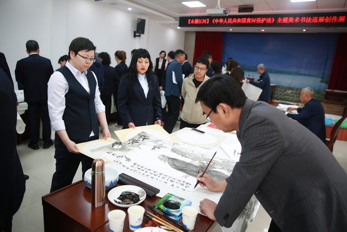 “水墨江河——《中華人民共和國黃河保護法》”主題美術(shù)書(shū)法作品巡展走進(jìn)亭口水庫